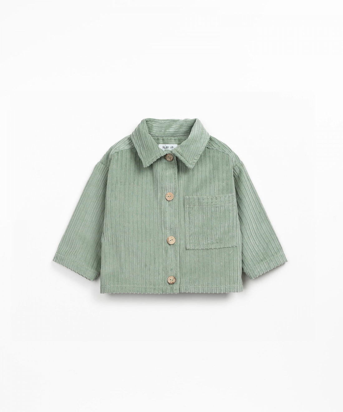 Questa giacca camicia in velluto a coste larghe è realizzata in tessuto di cotone e...