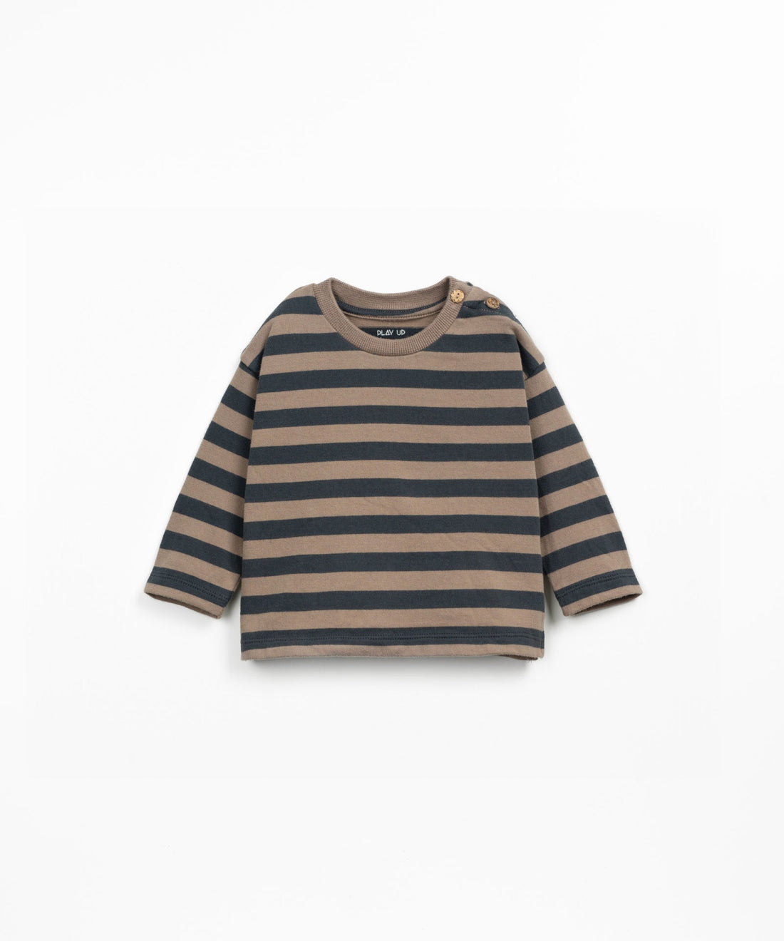 T-shirt a manica lunga. Fantasia a righe. Modello serafino con bottoni. Composizione: 95% cotone /...