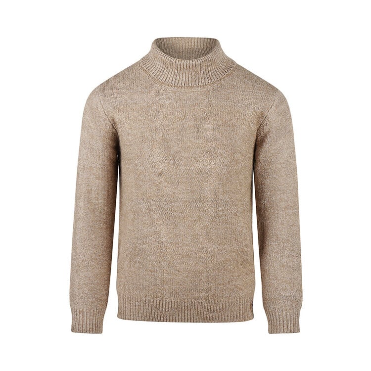 Questo maglione a collo alto marrone chiaro, è realizzato con un tessuto a maglia fine...