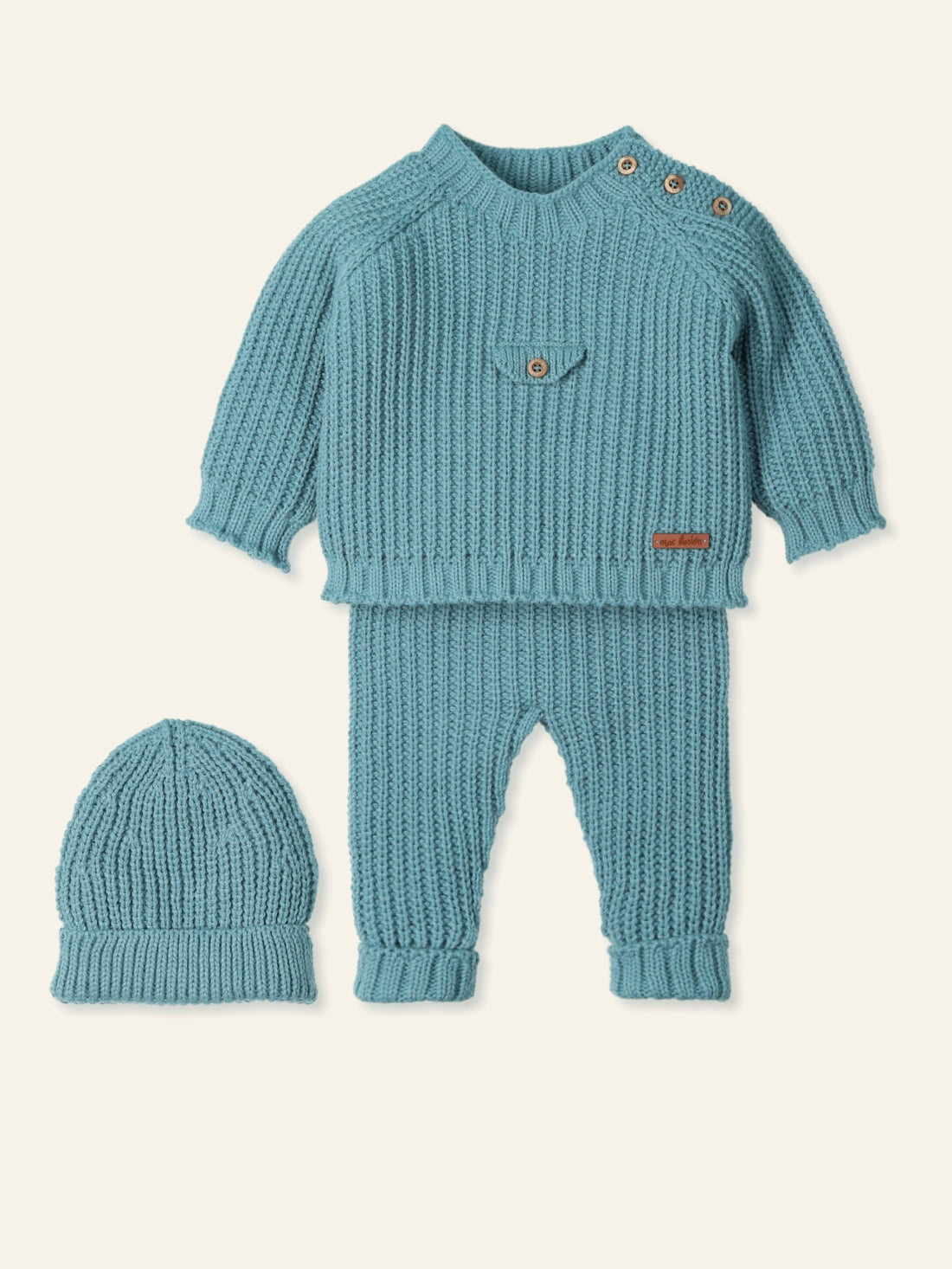 Questo completo in maglia da neonato è composto da un maglioncino a maniche lunghe con...